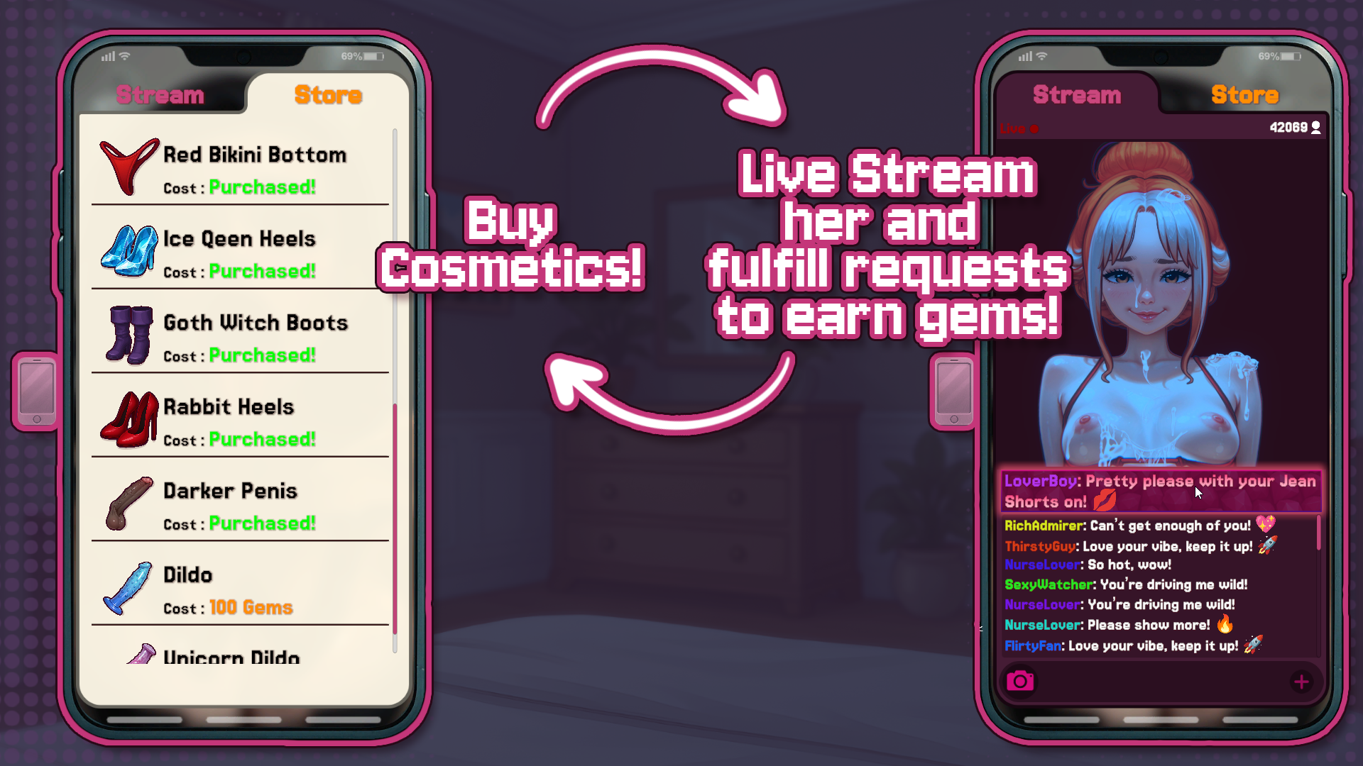 It’s lighthearted, exhibitionist, and a little taboo (lol). If you enjoy streaming vibes, playful sex sims, and character customization, you’ll feel right at home.